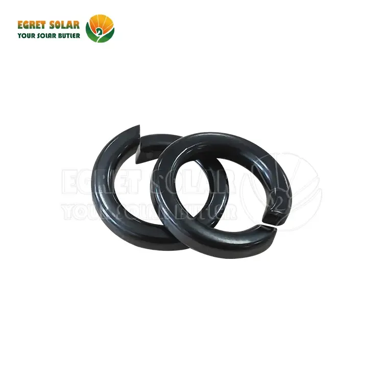 Päikesepaneeli päikeseenergia paigaldamise vedrupesur on olulised päikeseenergia paigaldustarvikud, mida kasutatakse kinnitussüsteemides poltide, pähklite või kruvide vältimiseks vibratsiooni või dünaamiliste koormuste tõttu lõdvenemist. SUS304 roostevabast terasest valmistatud need seibid pakuvad vastupidavust ja korrosioonikindlust, muutes need ideaalseks päikeseenergia kinnitussüsteemideks ja muudeks välirakendusteks.